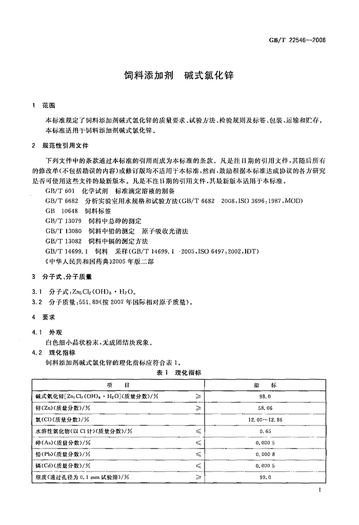 GBT22546-2008飼料添加劑堿式氯化鋅標(biāo)準(zhǔn)